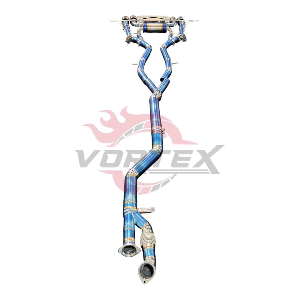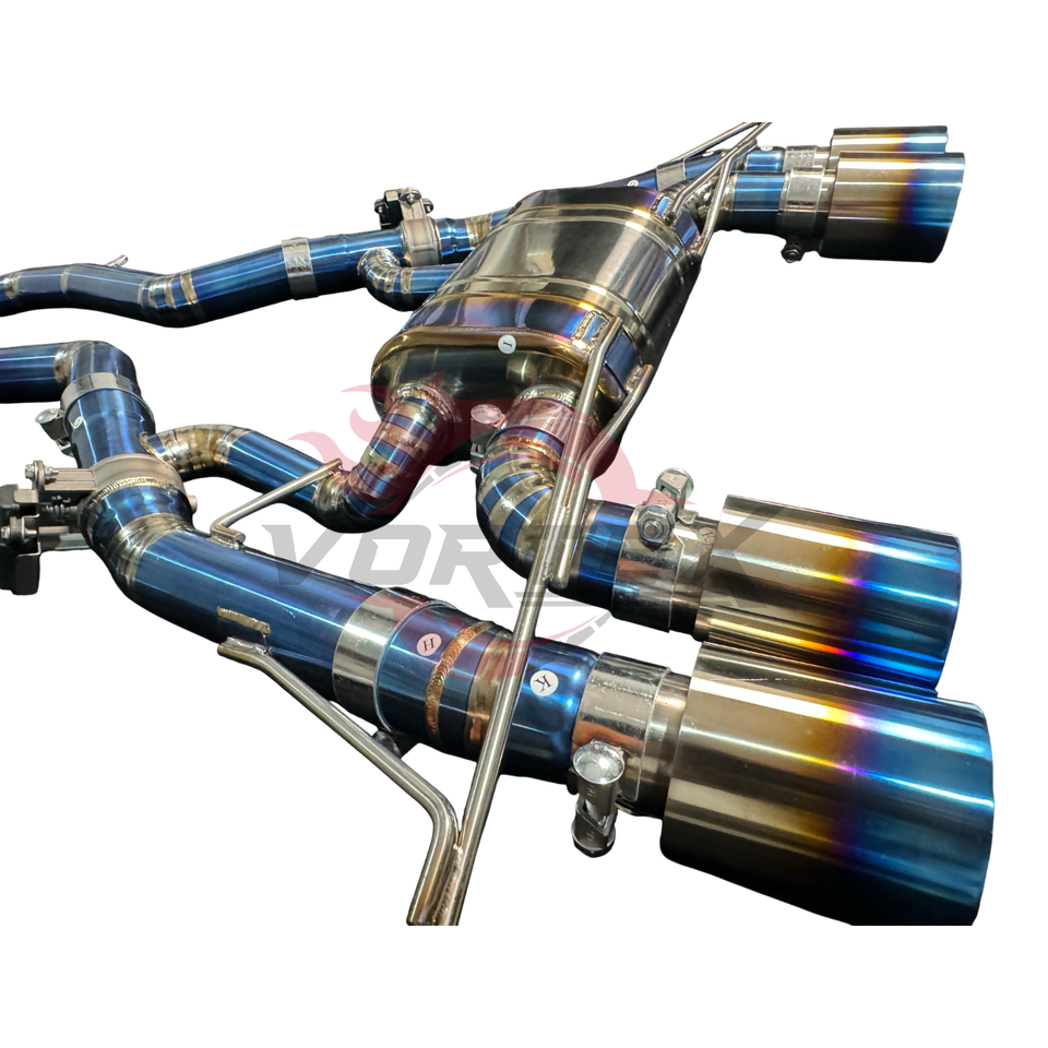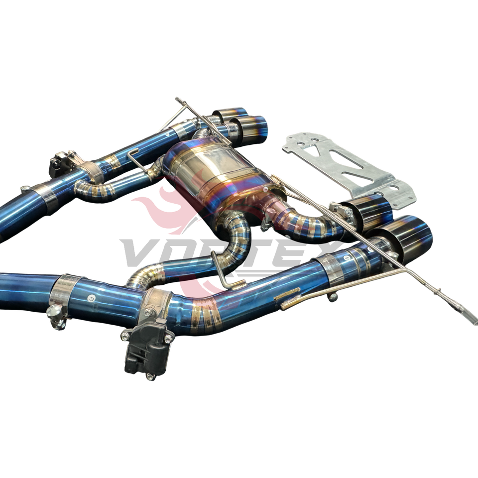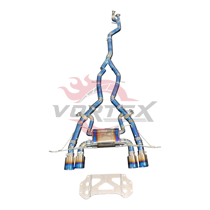 Sistema de Escape Deportivo Catback Vortex para G80 G82 M3 M4, Aleación de Titanio, Acabado Azul Quemado, Diseño de Escamas de Pescado, 1.2 mm de Grosor