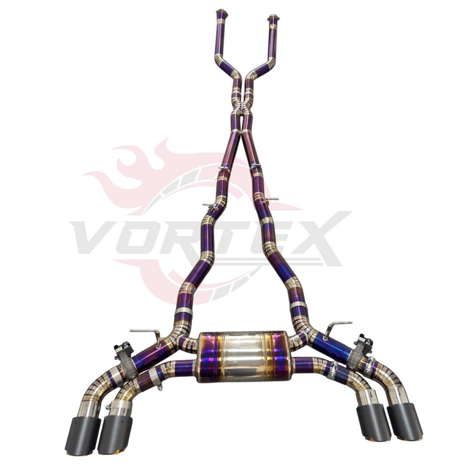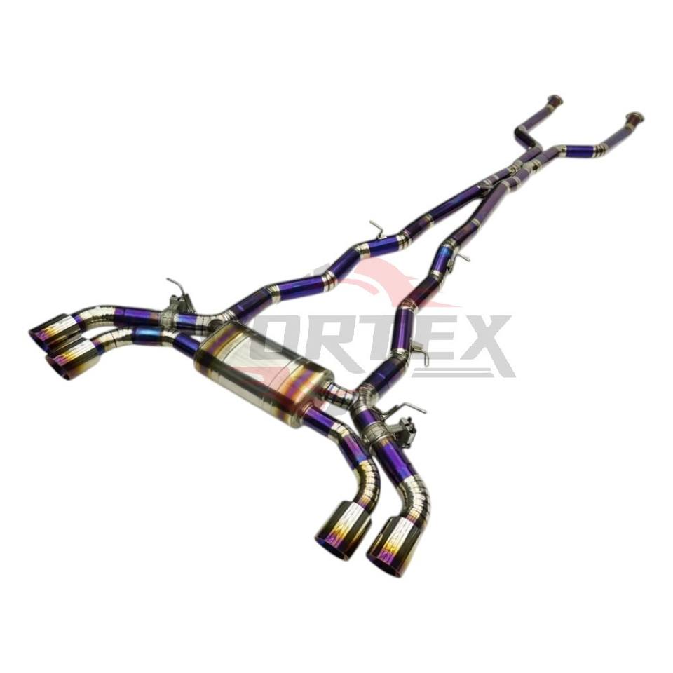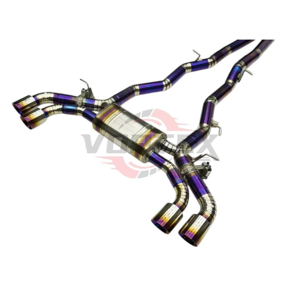 Sistema de Escape Catback Vortex Purple Titanium para BMW M5 G90 S68 4.4T V8 2025-2026 con Sistema Valvetronic y Puntas Cuádruples de Fibra de Carbono
