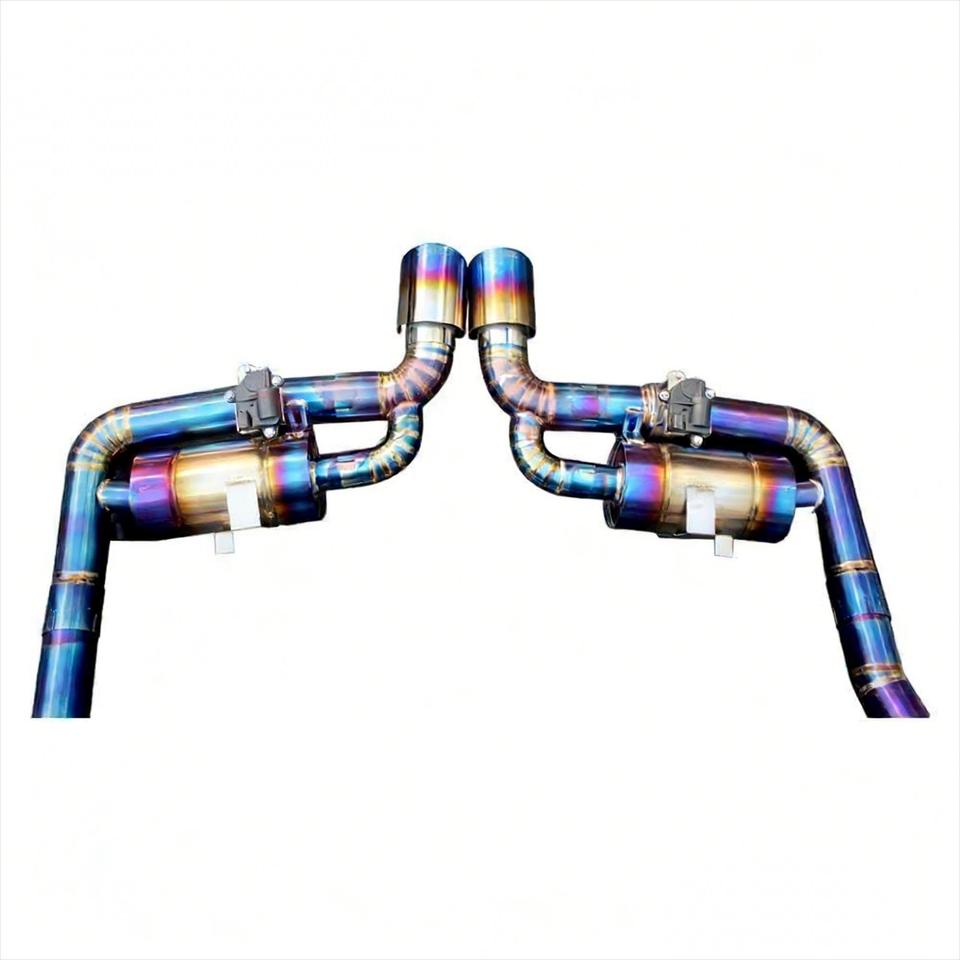 Sistema de escape Vortex Racing Titanium Valvetronic compatible con Porsche 718 Boxster Cayman 2.0T 2.5T, kit de rendimiento Pie-cut Burnt Blue.