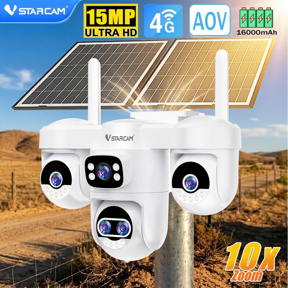 Cámara de Seguridad Vstarcam de 15MP con Múltiples Lentes, Zoom 10X, 4G Solar, Batería de 16000mAh, PTZ para Exteriores, Detección Humana, Impermeable, AG623ZF