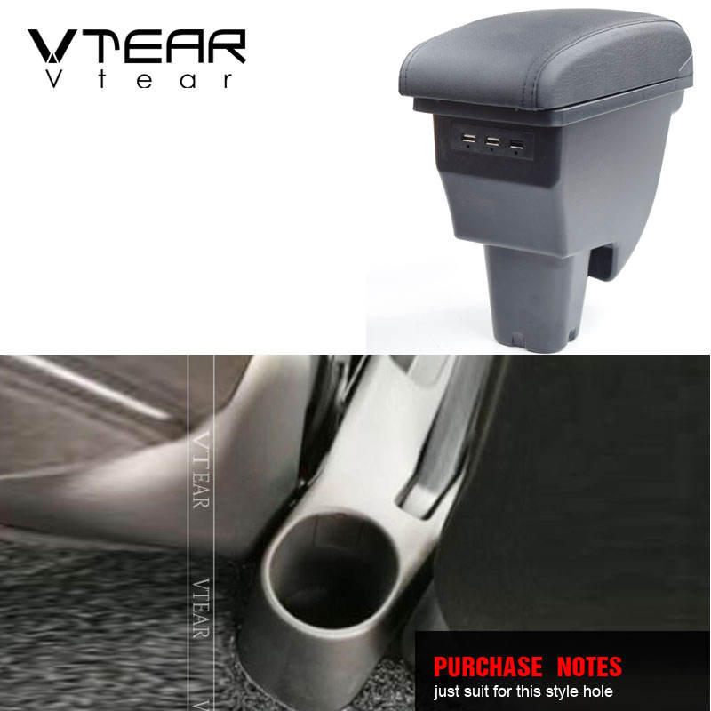 Reposabrazos Vtear para Kia Picanto R, de Cuero con Interfaz USB, Caja de Almacenamiento, Hilo Rojo, Accesorios Interiores para Auto, ABS, 14-18