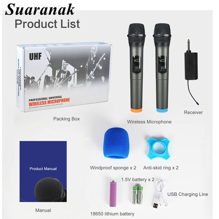 Micrófono inalámbrico de mano para Karaoke, amplificador de voz dinámico profesional, doble micrófonos, para boda, cantar, iglesia, grabación de voz, W-10