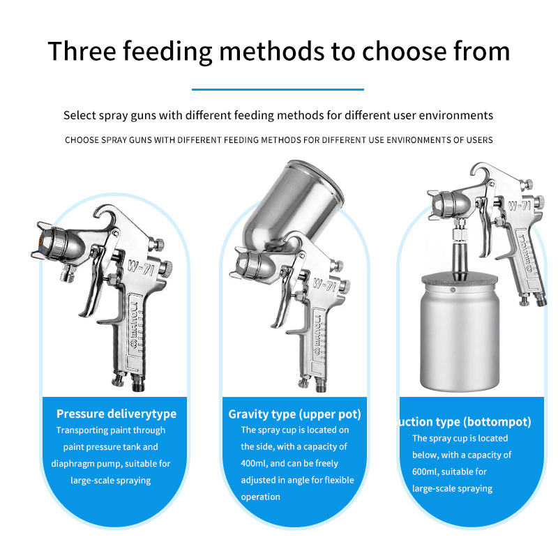 Pistola de Pulverización Neumática de Alta Atomización W-71 para Muebles y Sillas, Pulverizador de Pintura y Barniz de Doble Recipiente