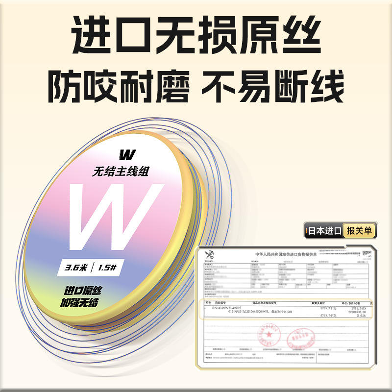 Conjunto de línea principal sin nudos W de 3.6 m y 1.5H, línea de pesca trenzada de nailon para lagos, ríos y estanques.