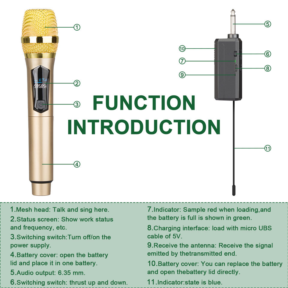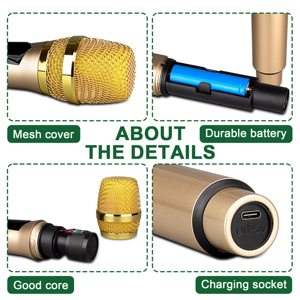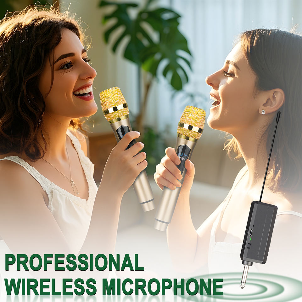 Sistema de Micrófono Inalámbrico Profesional W102 de 2 Canales, Micrófono de Mano Cardioide con Cancelación de Ruido, Ligero, con Luces LED, de Metal y Plástico