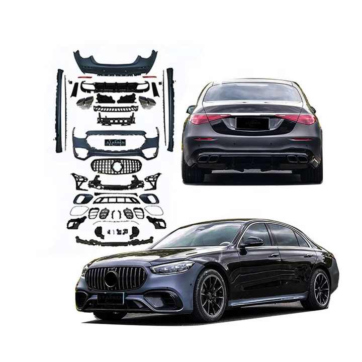Kit de carrocería W223 Clase S de gama baja a alta S63 AMG Parachoques delantero y trasero Faldones laterales Rejilla delantera Deflector trasero para Mercedes-Benz