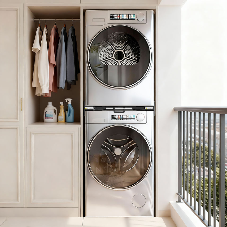 Kit de apilamiento manual de acero inoxidable W519 para lavadoras/secadoras de varias marcas, base para lavadora de carga frontal para uso hotelero