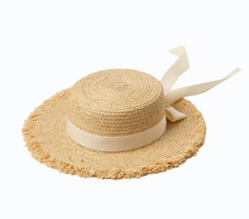 W645 Sombrero de paja plano de primavera y verano para niños, nuevo estilo con borde cepillado, lazo de rafia, sombrero de Sol de moda para viajes al aire libre