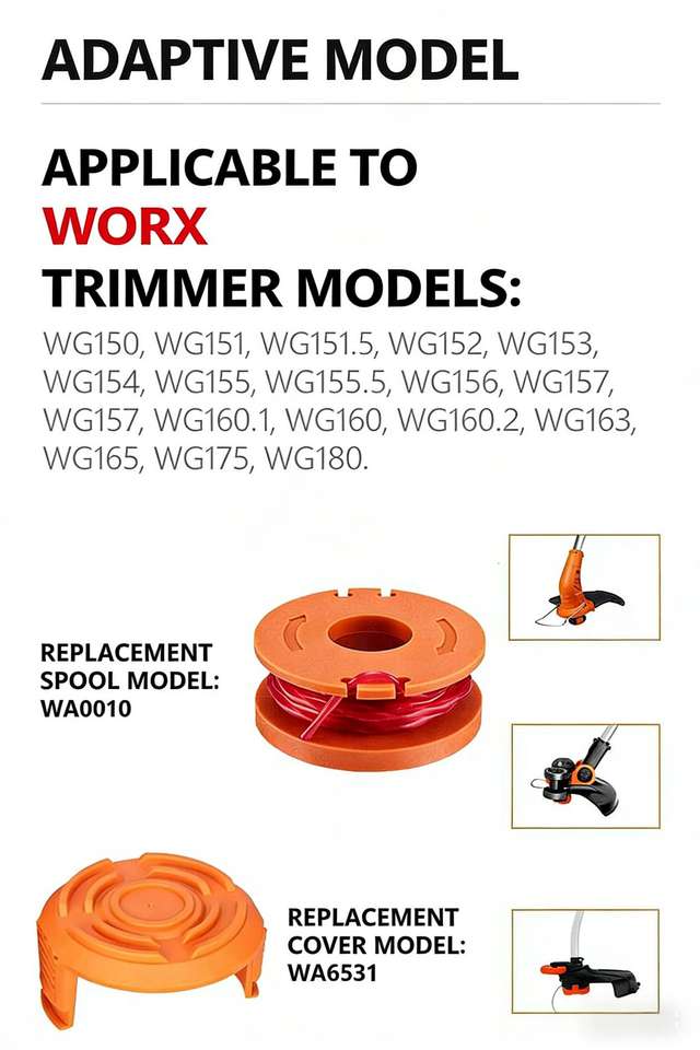Cabezal de recorte WA0010 WA0004, bobina de repuesto, línea de nailon de 1.6mm, 10FT/3.05M para desbrozadora Worx WG151 WG163 WG170