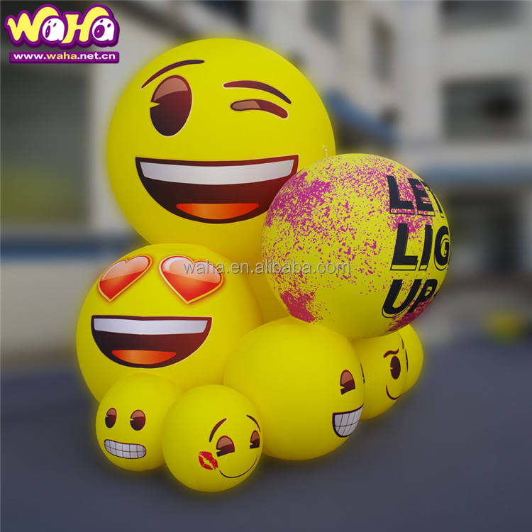 Modelo de bola de cara sonriente inflable con iluminación LED WAHA para decoración de fiestas