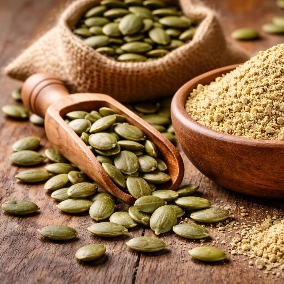 WARRLY Extracto Natural de Semilla de Calabaza en Polvo 99% Superalimento Proteico Grado Alimenticio Envasado al Vacío en Envase de Vidrio Suministro a Granel