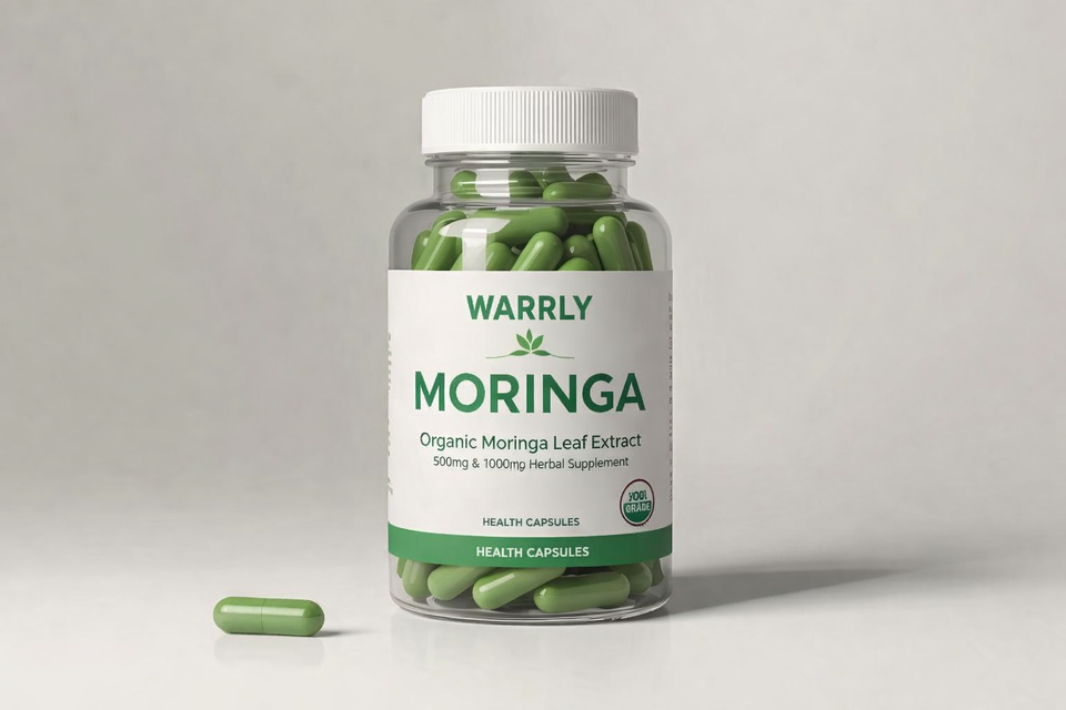 WARRLY Extracto de Hoja de Moringa Orgánico en Polvo 99% Puro Grado Alimenticio Suministro a Granel Natural en Botella