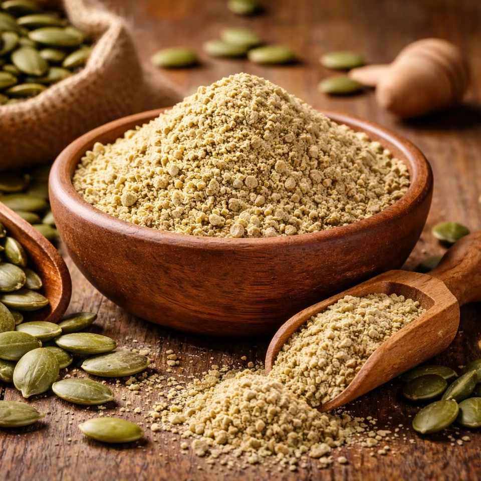 WARRLY Extracto de Semilla de Calabaza en Polvo Premium, 99% Proteína Vegetal Natural, Grado Alimenticio, Envasado al Vacío en Contenedor de Plástico, Suministro a Granel
