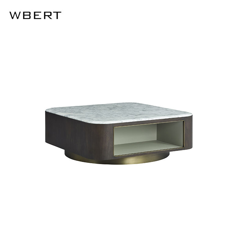 WBERT Mesa de té de almacenamiento de tablero de roca brillante Simple de lujo de estilo europeo Mesa de centro cuadrada de madera maciza Sala de estar pequeña