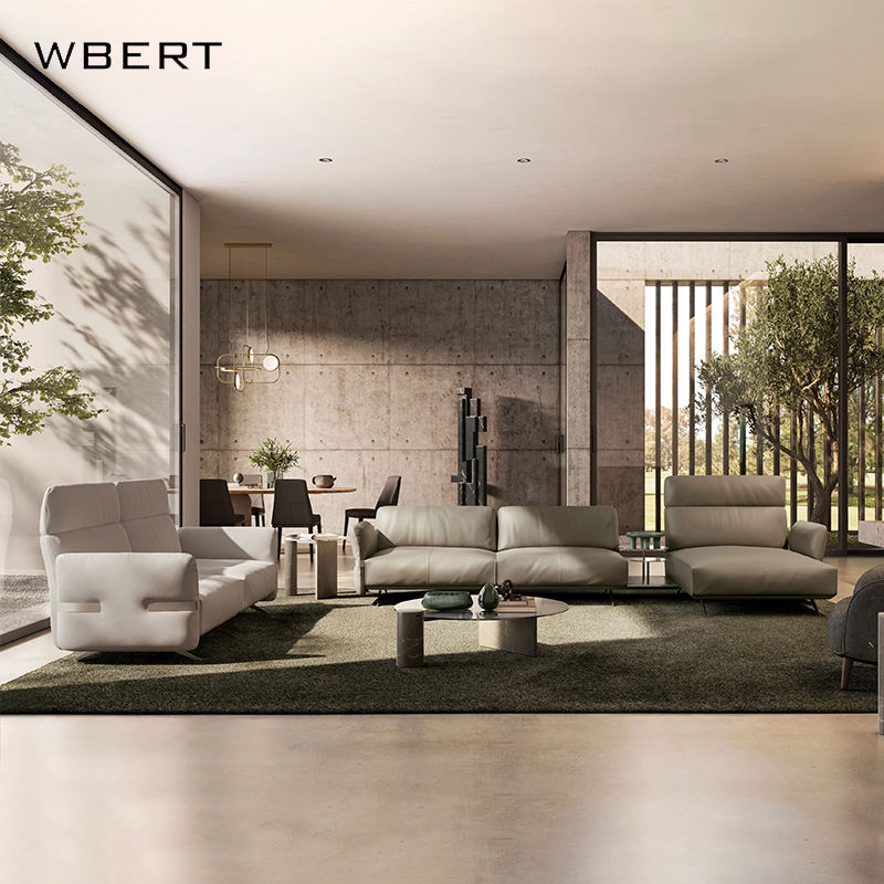 WBERT italiano personalizado cuero sofá silla conjunto moderno lujo alto pie piso plano muebles para sala de estar tela mínima
