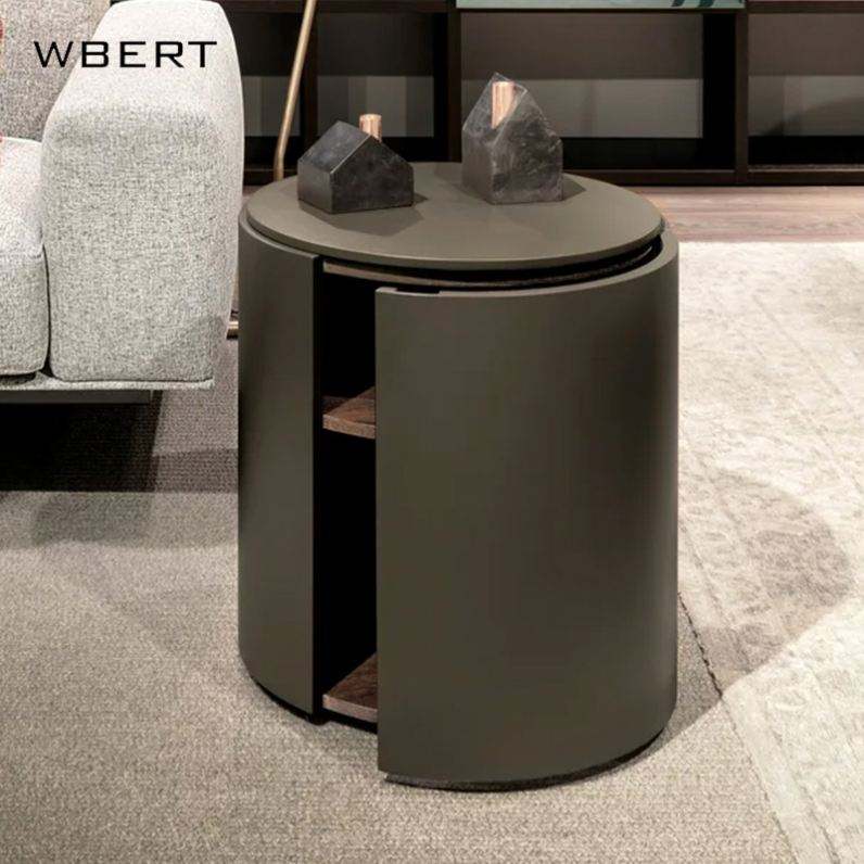 WBERT mesa auxiliar lacada Italiana Moderna minimalista pequeño apartamento sala de estar dormitorio cilíndrico mesita de noche de madera