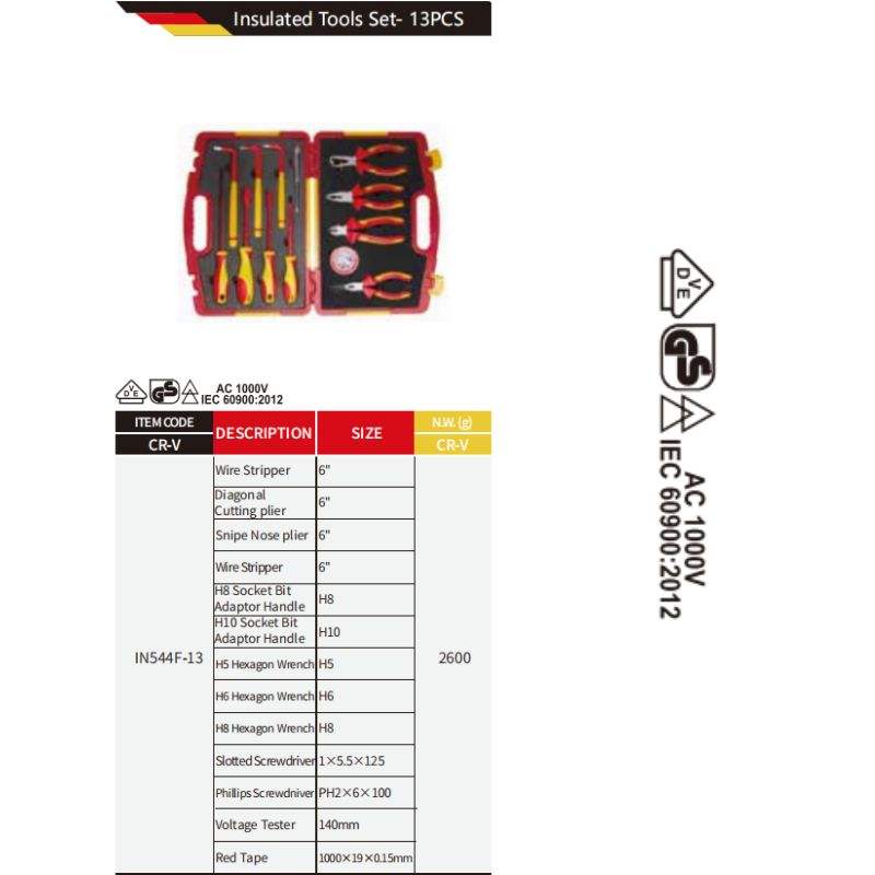WEDO VDE 1000V Juego de herramientas aisladas 13 piezas con alicates Destornilladores Llave hexagonal Probador de voltaje