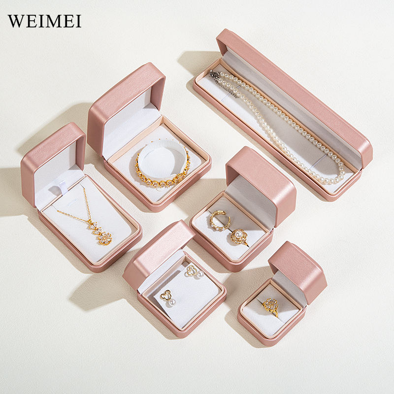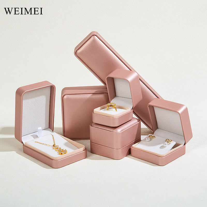 WEIMEI-Joyero de terciopelo rosa champán con logotipo personalizado, anillo, pendientes, colgante, collar, Caja, embalaje de joyería
