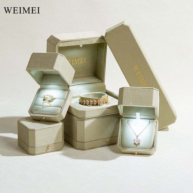 WEIMEI Microfibra Joyero LED Luz Terciopelo Interior Logotipo Personalizable