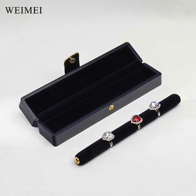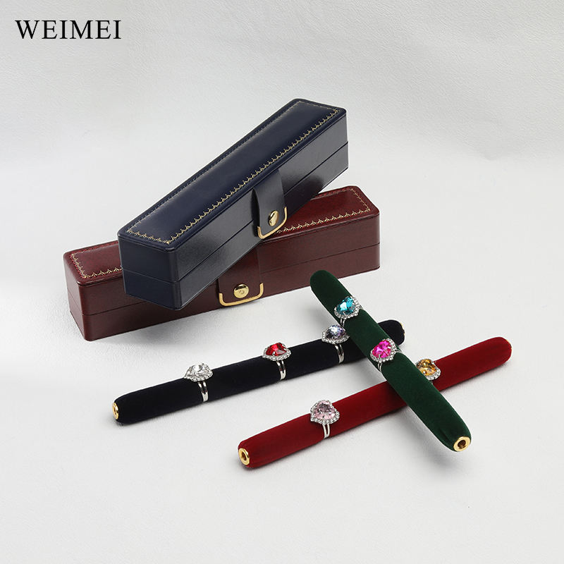 Caja de almacenamiento de anillo retro WEIMEI Estuche de joyería con logotipo personalizado de cuero y terciopelo con inserto largo para organización compacta