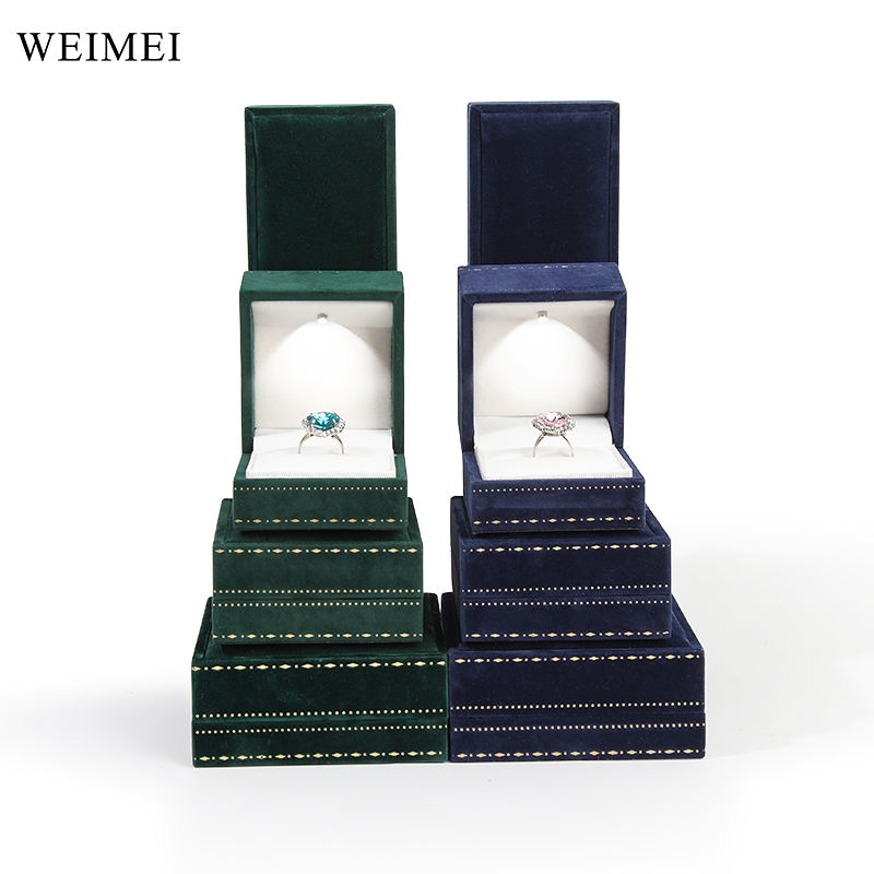 Caja de anillo cuadrado de ángulo recto WEIMEI, almacenamiento de joyas de terciopelo con luz LED para colgante, conjunto de pulsera, embalaje para joyero