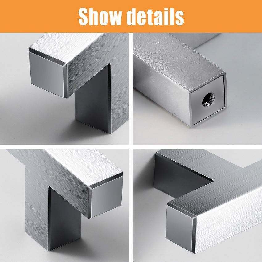 WEKIS Tiradores Cuadrados de Aleación de Zinc Sólido de 5 Pulgadas para Muebles de Dormitorio, Cocina y Exterior, Acabado Plateado