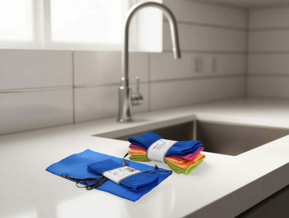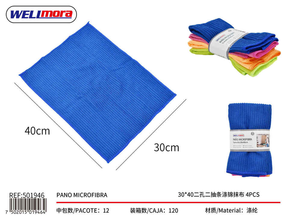 Paño de limpieza de microfibra WELImora, 30x40cm, dos orificios con correas, uso en cocina, limpieza del hogar perforada rectangular, 4 Uds.