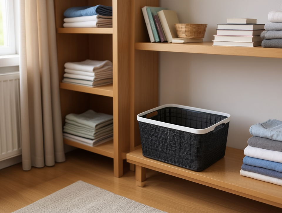 Cesta de almacenamiento WELImora rectangular de PP con asas, contenedor de almacenamiento para el hogar de estilo simple