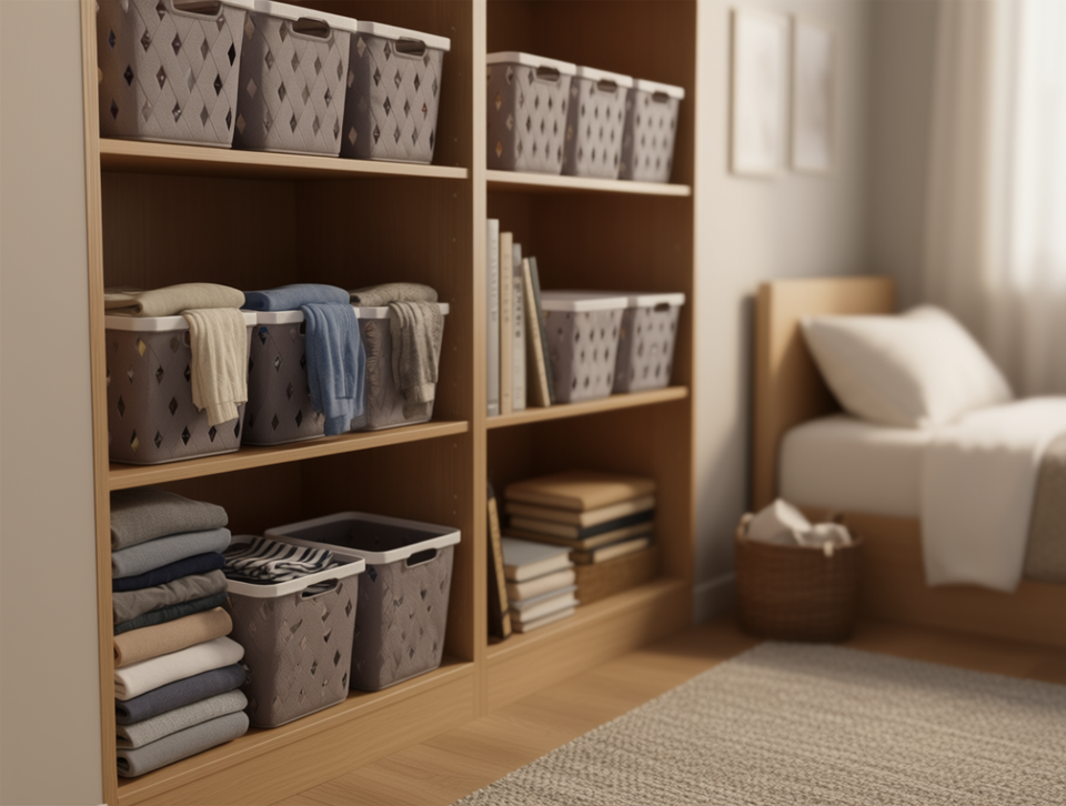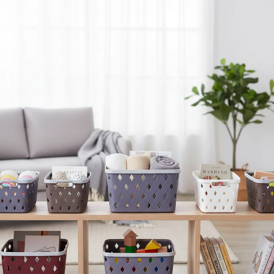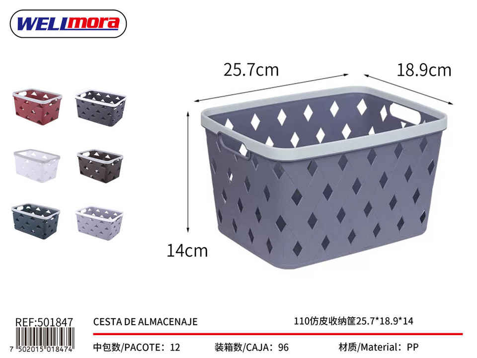 Cesta de almacenamiento WELImora 25,7x18,9x14cm rectangular de PP con asas para organización del hogar