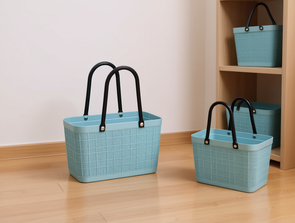 Cesta de almacenamiento WELImora rectangular de plástico tejido con asa para organización del hogar