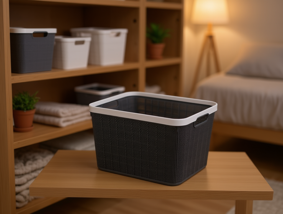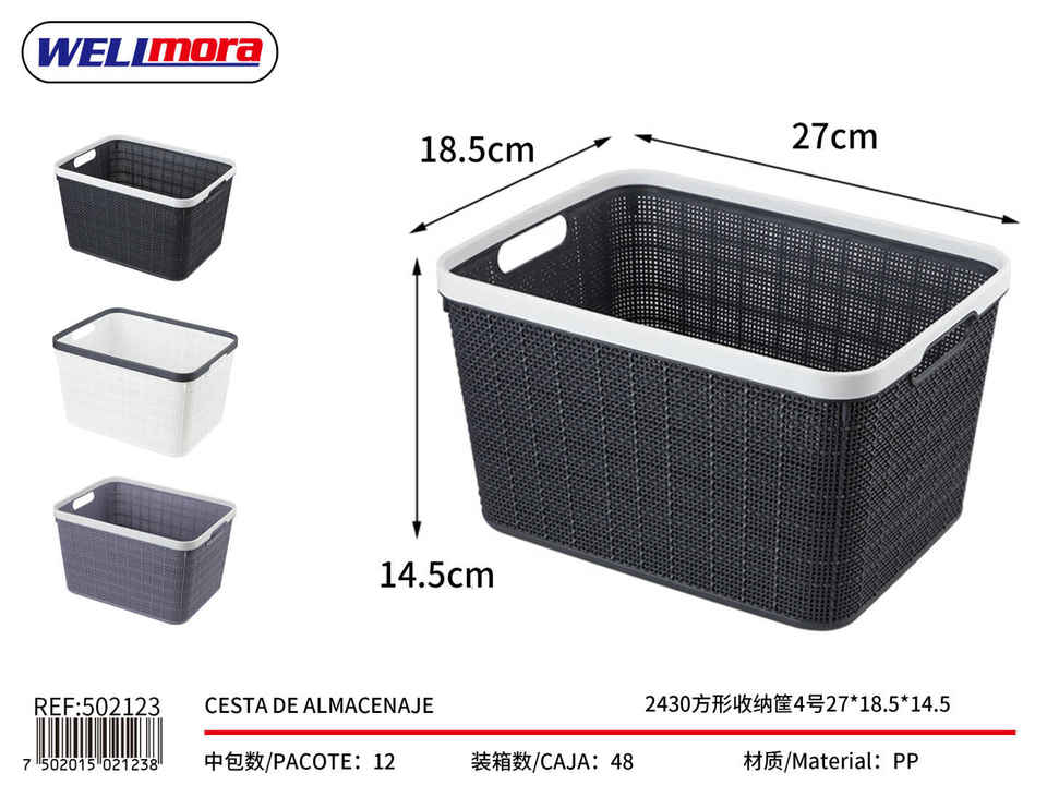 Cesta de almacenamiento WELImora rectangular con asas, material PP, estilo simple, contenedor de almacenamiento para el hogar