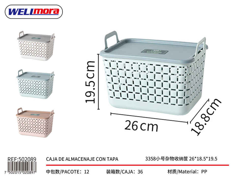 Caja de almacenamiento WELImora con tapa, 26x18,5x19,5 cm, contenedor de organización para el hogar con asa de plástico