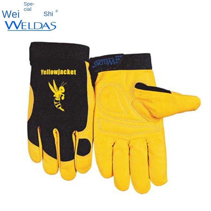 WELLAS 10-2680 Guantes mecánicos de cuero genuino a prueba de aceite a prueba de humedad con puño elástico 12 pulgadas sin silicona amarillo