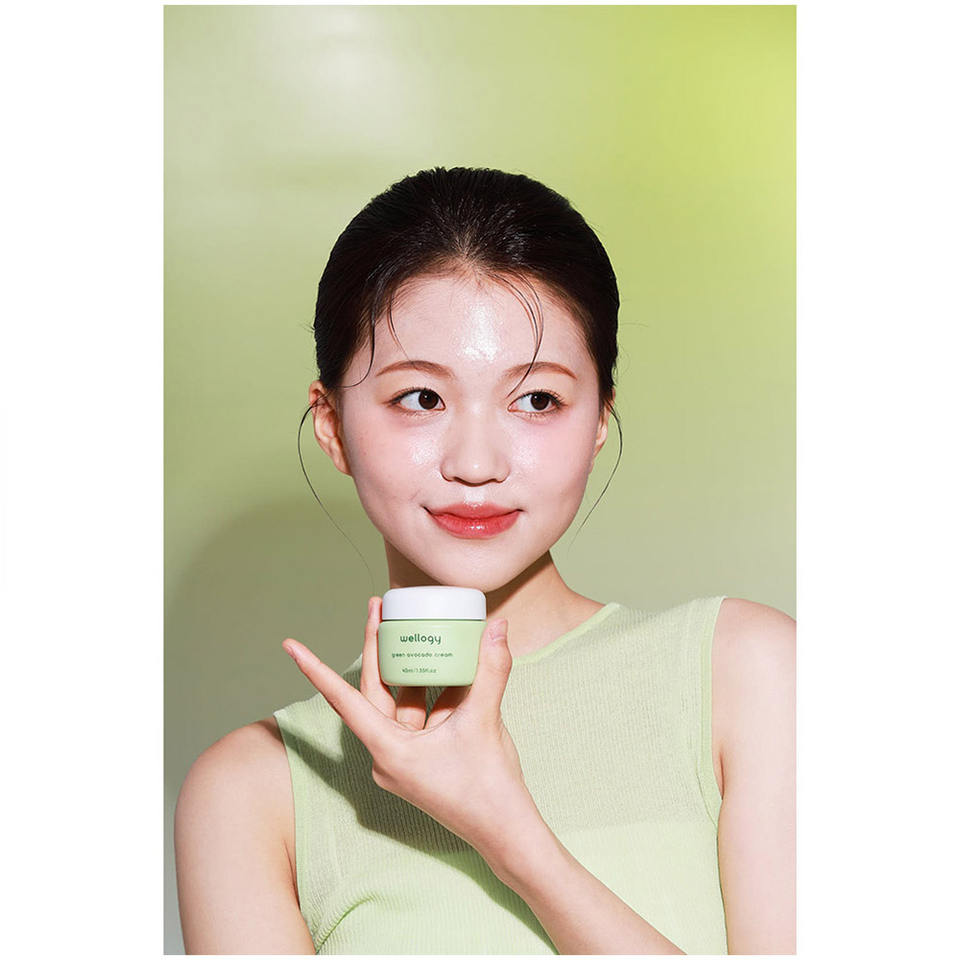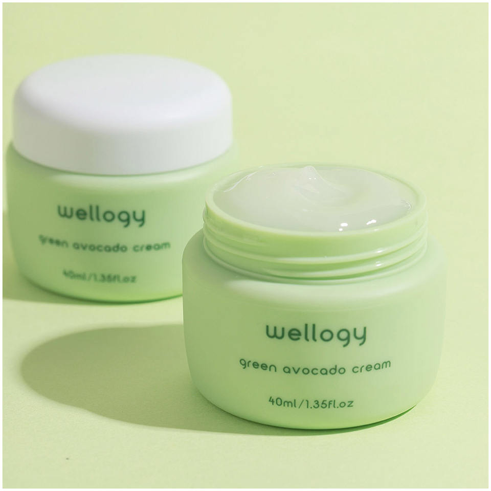 WELLOGY Crema Verde de Aguacate, Loción Facial con Infusión de Vitamina C y Ácido Hialurónico a Base de Niacinamida, Fortalece La Barrera DE LA Piel