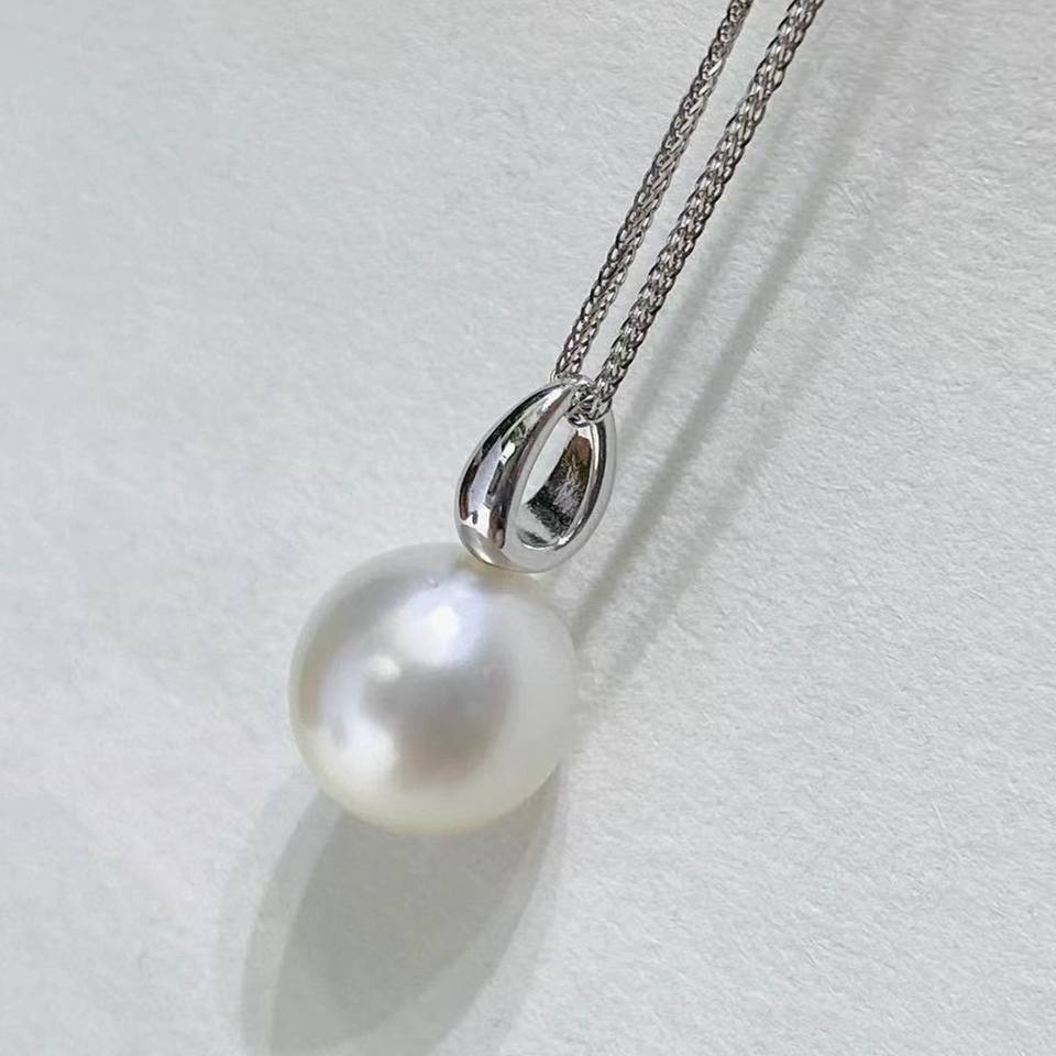 WENCHI 10181 31350 Accesorios de Perlas DIY, Colgante de Plata S925 con Collar de Jade Liso, Cuentas Redondas de 9-13 mm, Base Vacía Elegante