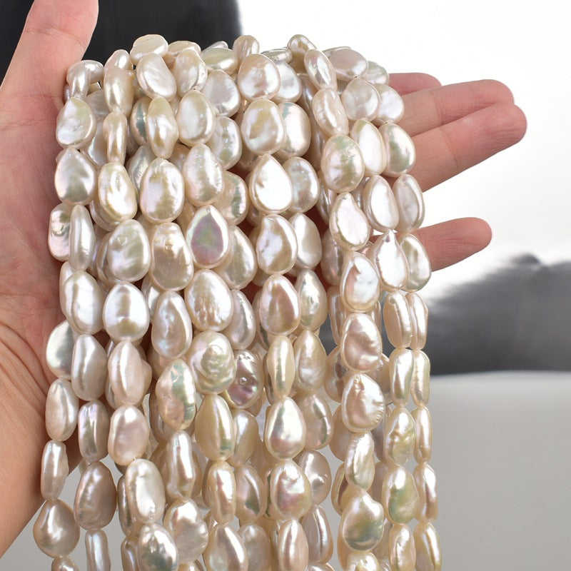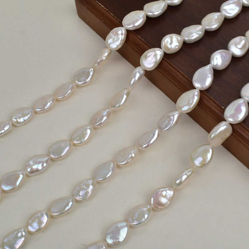 Perlas Keshi de Agua Dulce Blancas Naturales Barrocas WENCHI 1098 (9x14mm, Hilo de 38cm) Accesorio para Joyería DIY