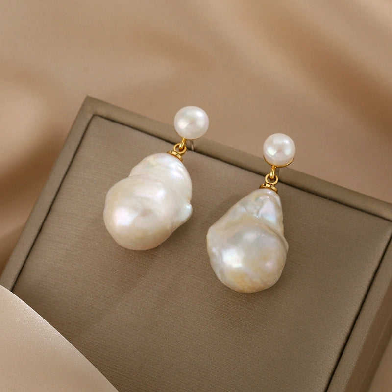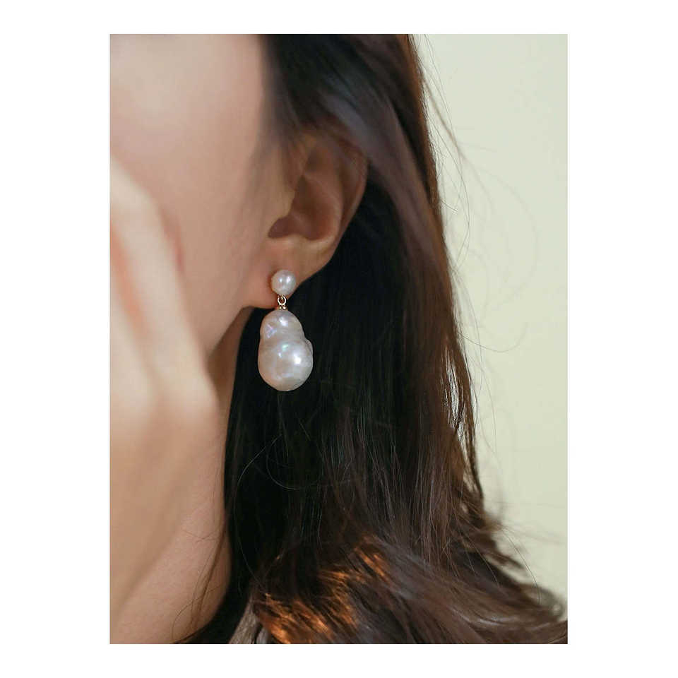 WENCHI 2025 Nuevos Pendientes de Botón Populares para Mujer con Perlas Barrocas Naturales