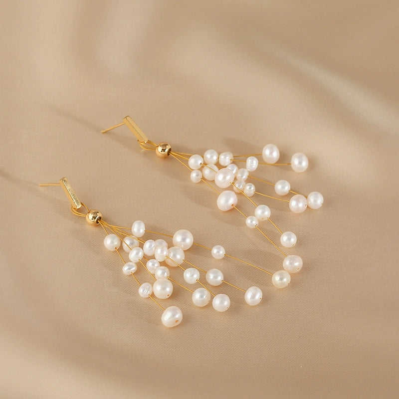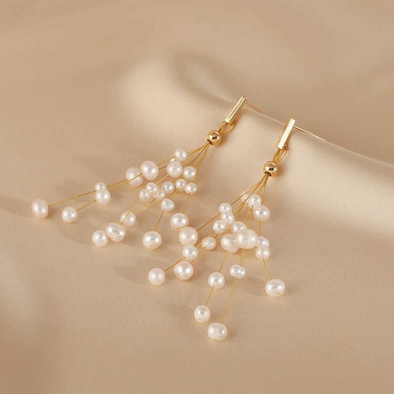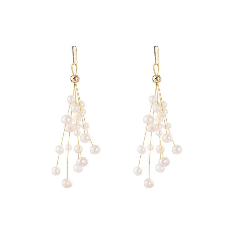 Pendientes largos con borlas y perlas naturales para mujer, estilo gitano, WENCHI
