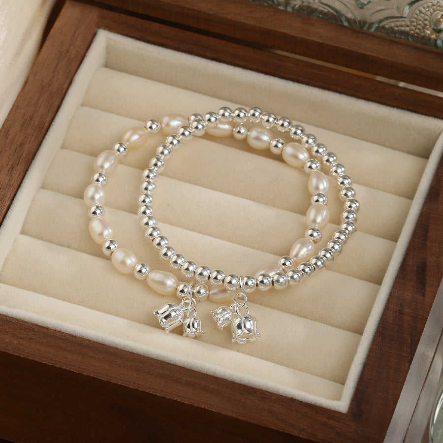 Pulsera de Perlas Naturales WENCHI para Mujer, Plata de Ley 925, Elegante Joyería Blanca para Novia
