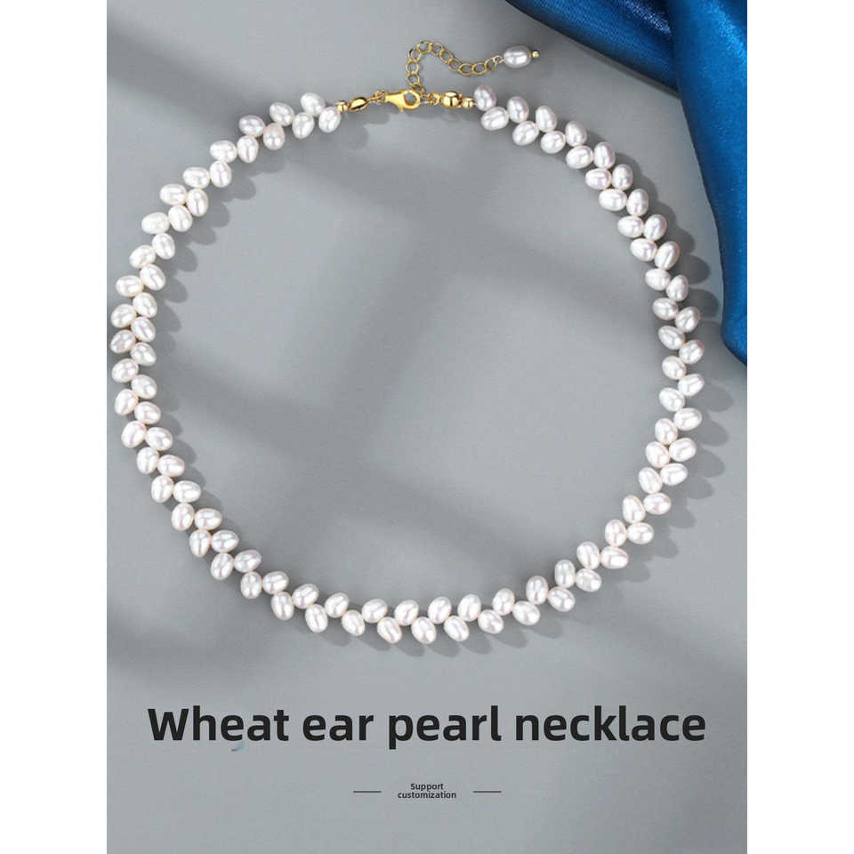 Conjunto de Joyería Vintage para Mujer WENCHI, Collar de Perlas Naturales de Agua Dulce, Diseño de Espiga de Trigo y Grano de Arroz, 450g, Fresco y Elegante