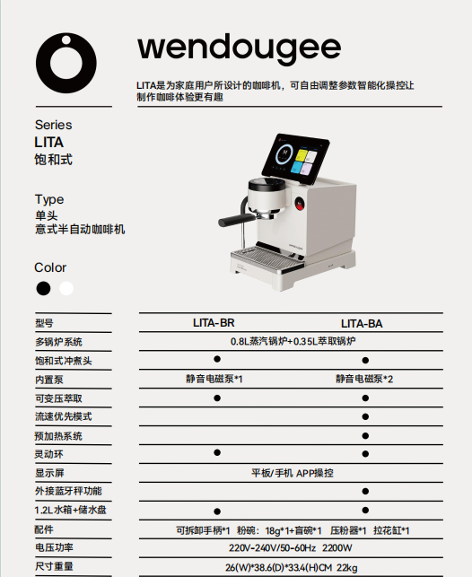 Cafetera Espresso LITA para el Hogar, con Doble Caldera, Presión Ajustable y Aplicación