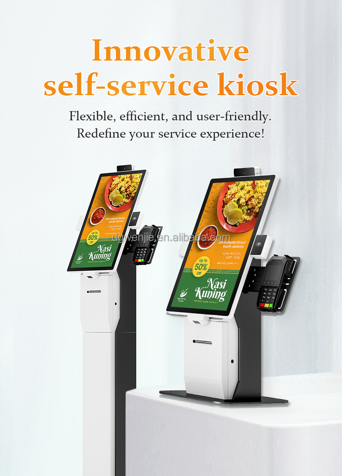 WENJIE Kiosco de Autoservicio con Pantalla Táctil Android de 21.5'', NFC, Terminal de Pago y Pedidos, para Colocar en el Suelo