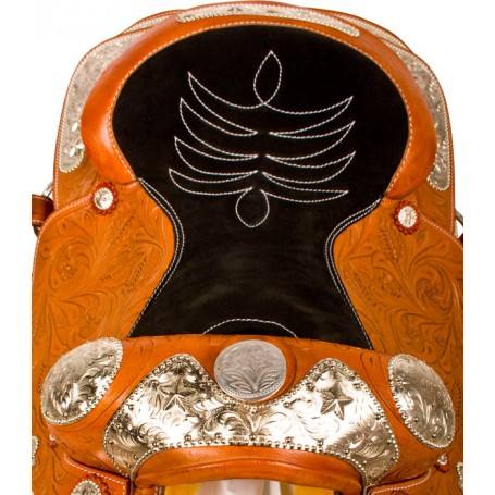 Sillín de caballo cómodo occidental para montar cuero de búfalo suave con Árbol de madera Sier Pleasure Show Saddles