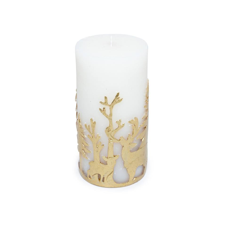 Vela de Pilar Blanca y Dorada de 474 g de Diámetro 7CM de altura, 14.3CM