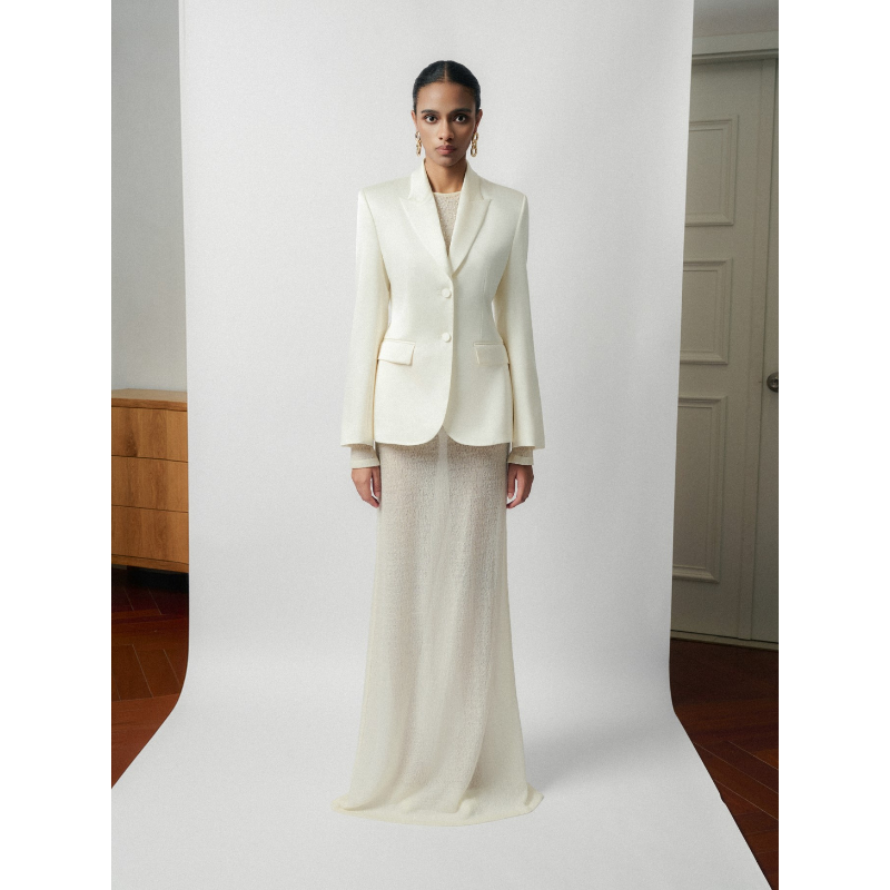 WHITE ANT Women Blazers Bolsillos delanteros de un solo pecho 2 botones Tamy Silk-Satin Blazer Conjunto de ropa de mujer de Vietnam