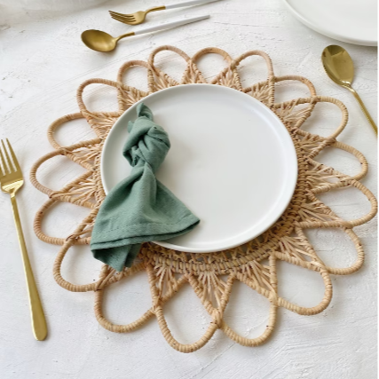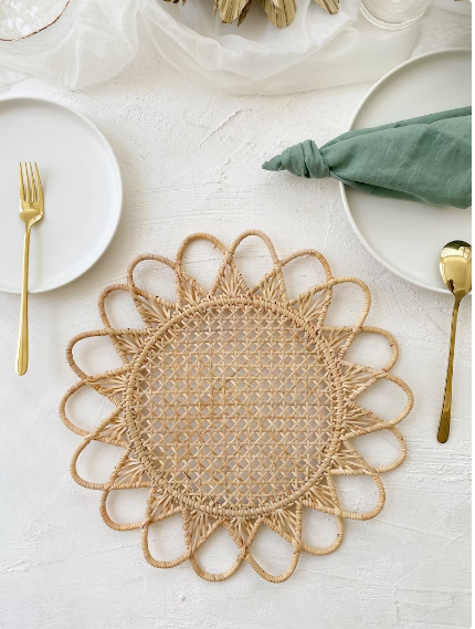 Venta al por Mayor de Manteles Individuales de Ratán con Flores Naturales 2022, Decoración de Pared, Manteles Redondos de Ratán con Flores