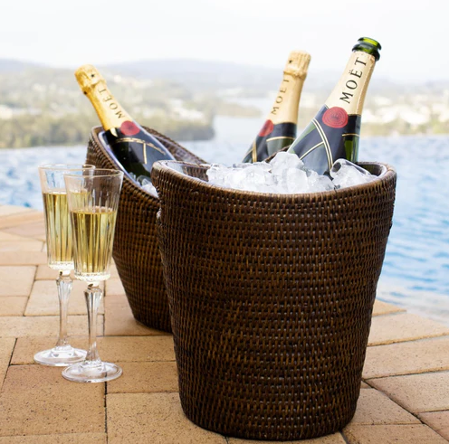Precio al por mayor Cubo de champán de mimbre ecológico, redondo, blanco, fabricante