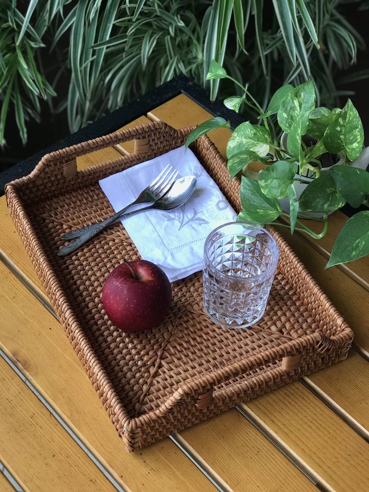 Precio al por mayor bandejas de ratán hechas a mano artículos para el hogar bandeja para servir decoración del hogar organizador de mesa