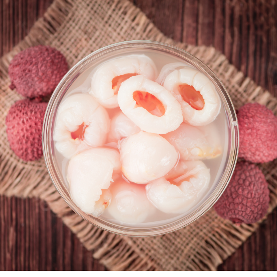 Ingredientes:Lichi, agua, azúcar, ácido cítrico