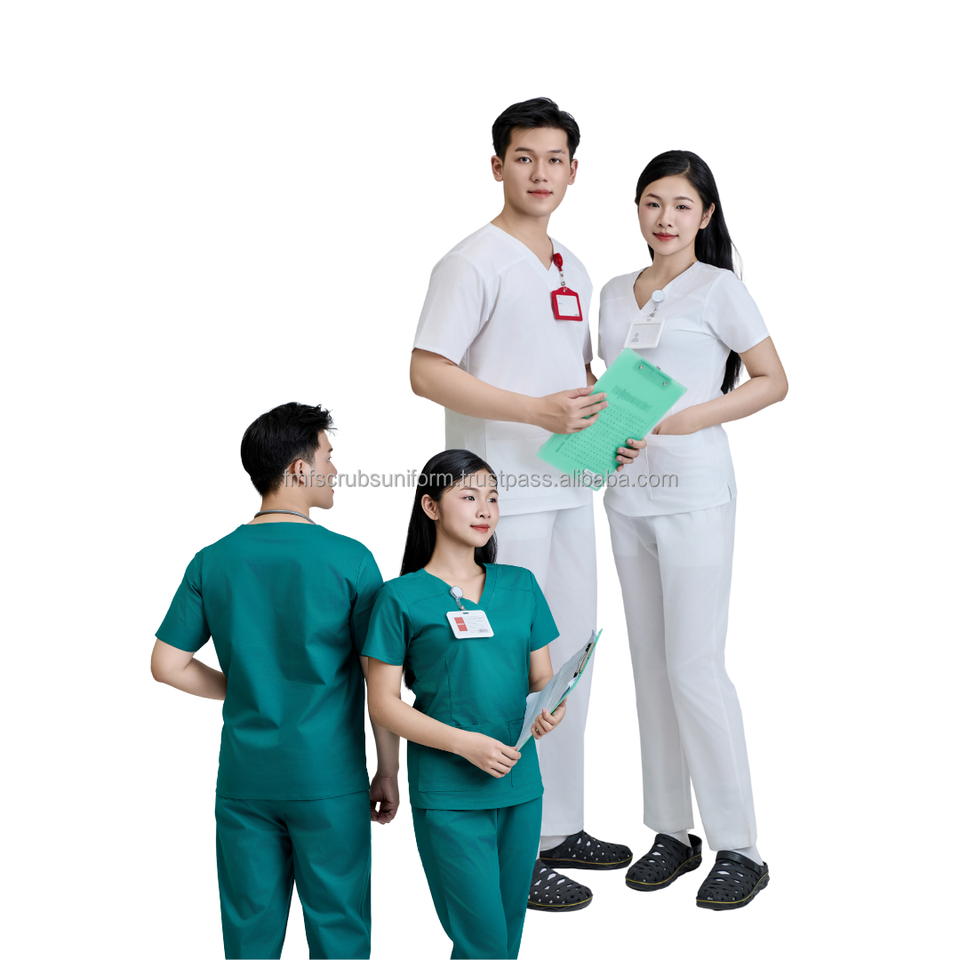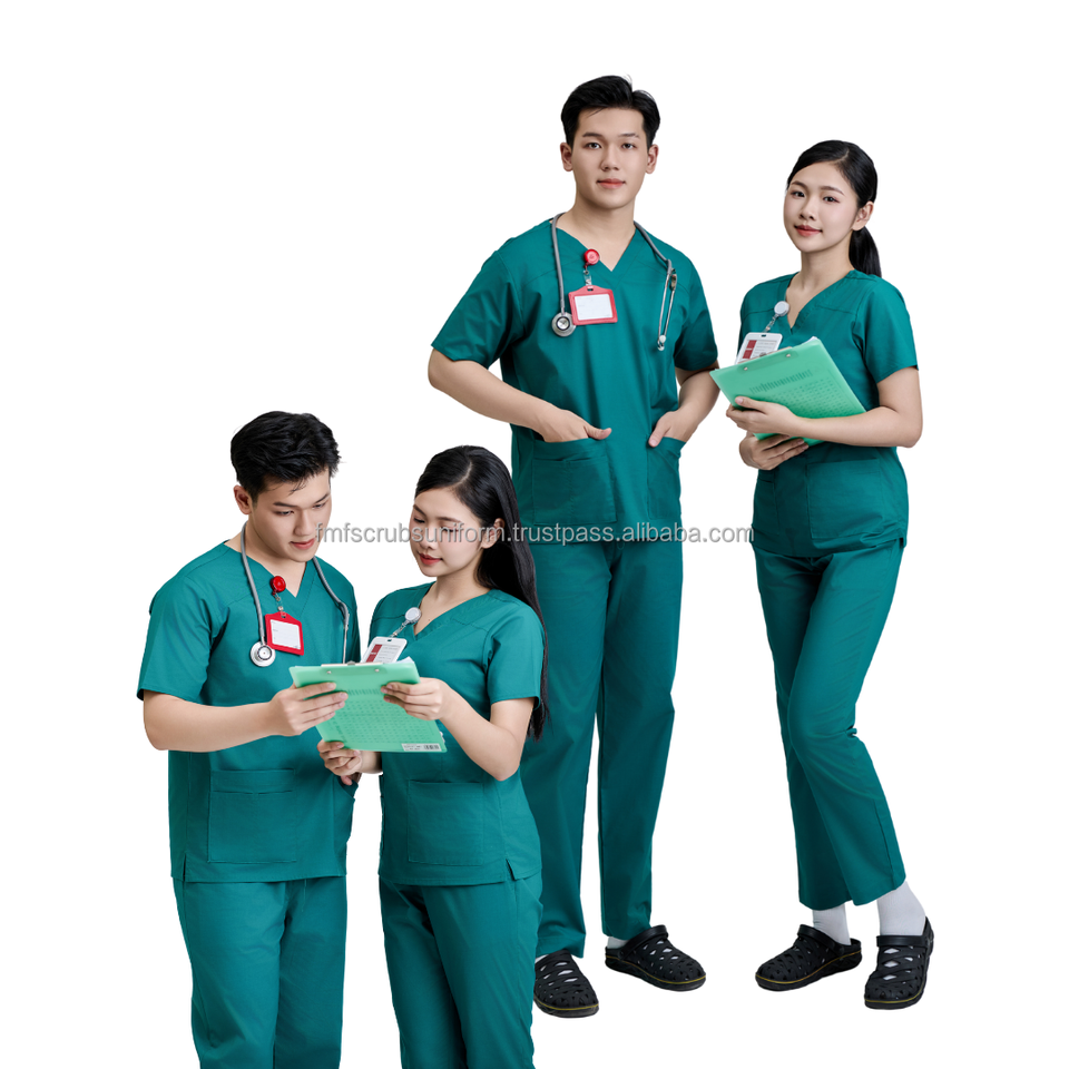 Uniformes de ropa de hospital al por mayor uniformes médicos suaves/elásticos para hombres/mujeres enfermería manga corta top-FMF fábrica de uniformes